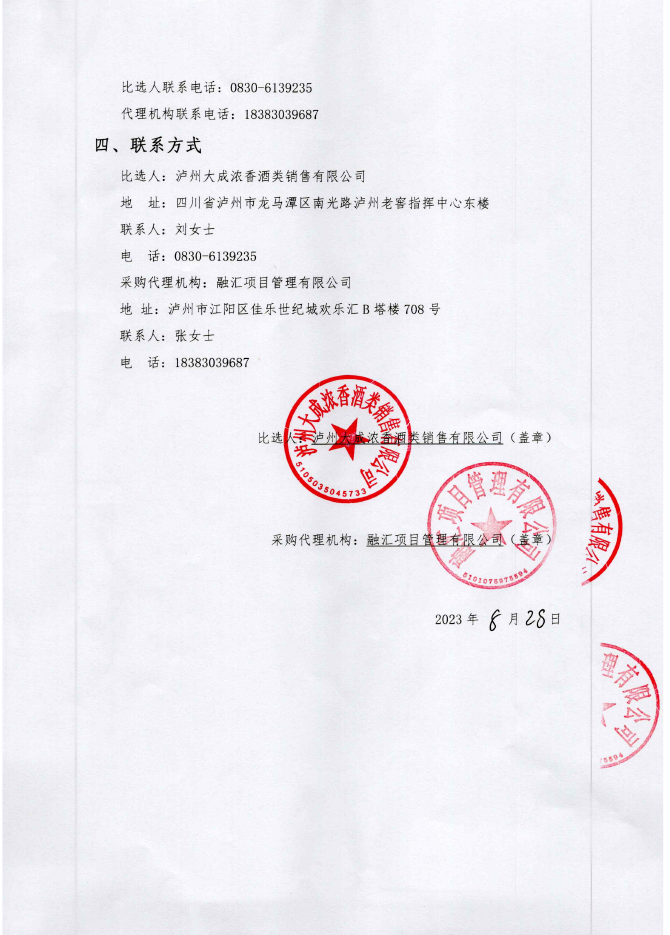 瀘州老窖重慶營(yíng)銷服務(wù)中心裝修裝飾工程(第二次)成交候選人公示